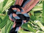 4 Thread the rope ends through the remaining rails, spaced at 300mm between each rail, securing with cable ties as you go. Tie off the rope with double knots under the base rail, then trim to leave 70mm tails. Fray the ends to form tassels.