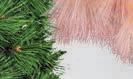 Securing with fishing line, hang baubles to dangle down and nestle on top of the arrangement. Wrap loosely with micro LED lights, hiding the battery pack on top. Tie fishing line to the ends of bamboo stakes to hang chandelier from a sturdy overhead beam.