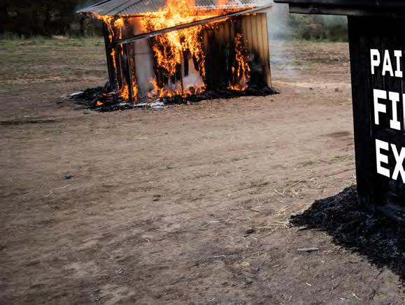 ABOVE ● DIY lolly station made using Growies 1500mm x 38mm x 38mm hardwood garden stakes in Black, $22.99/pack of 3, I/N: 0255917, Grunt jute twine, $3.20/75m, I/N: 4310292, Boxsweden wooden clothes pegs, $4.44/pack of 100, I/N: 0489722, ‘Magnolia Bud’ 70cm artificial flowers, $12.50 each, I/N: 0201226, Brunnings coconut fibre, $6.28/5L, I/N: 2910194, and Northcote Pottery 370mm wooden half barrel planters, $35.98 each, I/N: 2890296. BELOW ● DIY haunted cubby made using Lifetime 6ft (1830mm) blow mould trestle table, $69, I/N: 3192212, Cyclone ‘Backyard Farmer’ 2.5m x 2.5m anti bird net, $7.52, I/N: 0331907, Pillar ‘Platinum’ 1.8m weedmat in Black, $44.75/10m, I/N: 3041242, and Bear 50mm cloth tape in Black, $11.84/25m, I/N: 1661568.