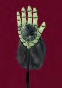 Using artist’s acrylics and round craft dabbing sponges, apply a black circle to pingpong balls and leave to dry, then apply a slightly smaller blue circle on top; let dry. Use small artist’s brushes to paint a black pupil on eyes, then a white dot highlight and red veins; let dry. Remove flower buds from faux magnolia greenery, then attach eyeballs in their place using hot glue. Stick eyeball plants into foam bricks placed in the barrel planters. Arrange coconut fibre to cover the foam.
