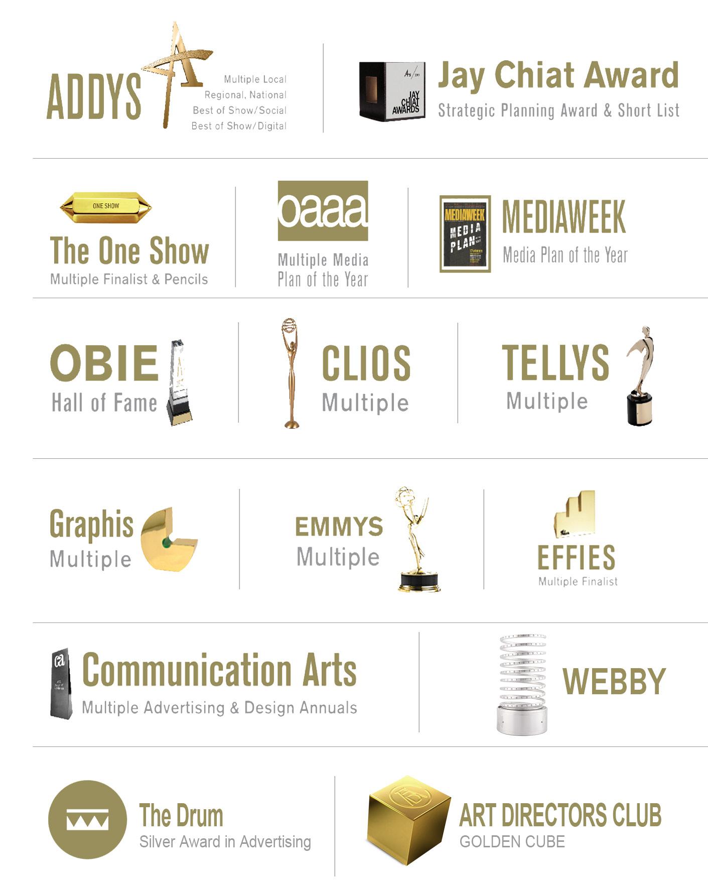 CEO AAF Silver Medalist, EFFIE Judge and Finalist, Jay Chiat Awards; featured in Wall Street Journal, New York Times, Business Week, ADWEEK, others