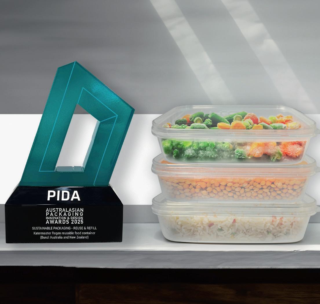 This year also marked the first-ever Bunzl New Zealand Sustainability Forum, with Bunzl’s Head of Sustainability, Felicity Kelly in attendance (pg 5). The beginning of March also marked the announcement of the 2025 Packaging and Innovation Design Award winners (pg 4), where Katermaster’s Regen container produly won in its category, and Advantage’s pallet wrap was nominated as a finalist. We also took a deep dive into the alchemy behind compostable bin liners and how they actually work (pg 28).
