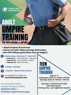 Do you want to join a sports league or simply play a sport in your free time? We’ve got you covered! The Department’s Sports Office coordinates a wide variety of adult and youth leagues each season to meet the needs of Burbank’s active community. New sports, clinics, summer camp offerings, adaptive sports, and leagues are continually added, providing new opportunities for participants of all skill levels. For those who love sports but can’t commit to a full league, drop-in programs offer a flexible and fun alternative. Enjoy activities such as basketball, dodgeball, volleyball, and more throughout the year. To learn more about upcoming sports offerings, turn to page 16 or visit BurbankCA.gov/Sports.