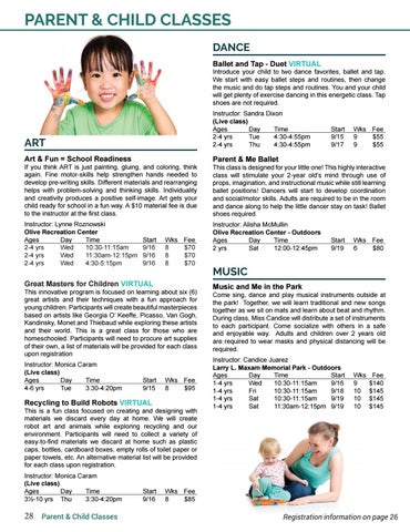 Instructor: Alisha McMullin Olive Recreation Center - Outdoors Ages Day Time 2 yrs Sat 12:00-12:45pm