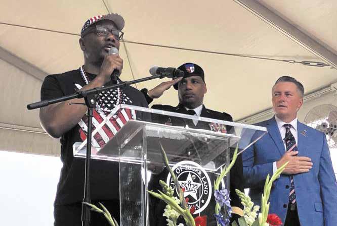 U.S. Army Maj. Gen. Anthony Woods, commanding general of the Texas State Guard, acts as main speaker during the Sugar Land Memorial Day celebration. Sugar Land Memorial Day Ceremony - Page 4 Fort Bend / Southwest • Volume 49 • No. 22 • $1.00 Visit www.FortBendStar.com WEDNESDAY • MAY 29, 2024 SEE ASSAULT PAGE 2 Staff Reports 713.370.3600 $65.00