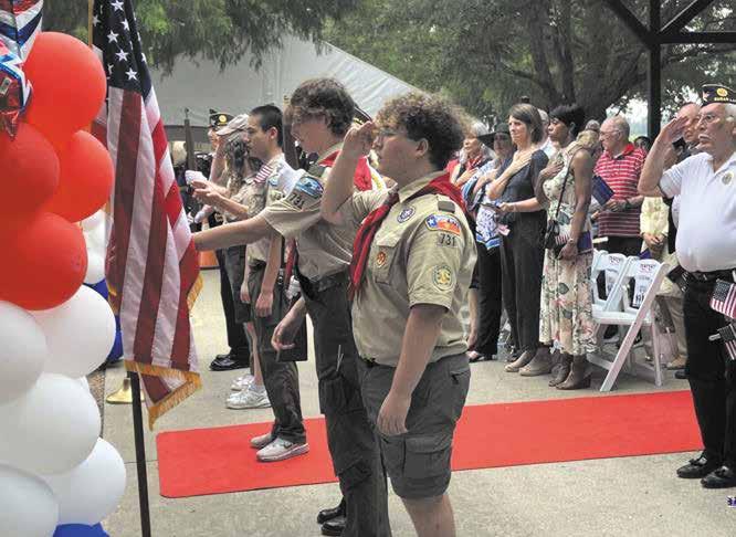Visitors were given small U.S. flags by members of Boy Scout Troops 731 and 1731 as they entered the park grounds, and were able to take in several military vehicles and displays of memorabilia provided by the Houston-based Sixth Calvary Historical Association
