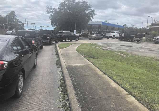 Cars line up outside a gas station on Cartwright Road in Missouri City just a few hours after the brunt of the storm had passed.