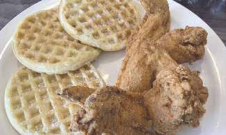 The chicken and waffles at Seven25 Café & Daiquiris on page 8