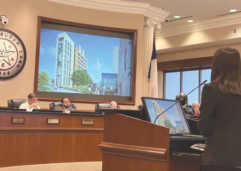 Laura Carrera of the Houston-based Urbano Architects frm presents proposed schematics of the redesigned Imperial Char House at a Sugar Land City Council meeting last week. Photo by Ken Fountain