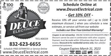 The Leader • Saturday, March 11, 2023 • Page 7 Looking for a Garage Sale or Yard Sale? Find them in our ne et Square section. Advertise your garage sale here. It’s Garage Sale Season! 713-686-8494 Flat roofs also. FENCING installation and repairs Call Sam 713-582-5500 ROOFING REPAIRS AND INSTALLATION DMI GENERAL DMI CONTRACTOR 713-296-9753 For all your construction / remodeling needs Electrical •Electrical •Plumbing Siding •Siding Roofing •Roofing •Tile •Flooring •Carpentry •Paint When you want results, advertise in The Leader. The Leader is YOUR newspaper. GARAGE/ESTATE SALE TACL A020360E 713-869-8876 “Honesty is our best discount” A/C And HeAting SAleS, ServiCe & MAintenAnCe you read this, then classified ads work. Call today to advertise 713-686-8494 The Leader • Saturday, March 11, 2023 • Page 7 GENERAL HOME IMPROVEMENTS GENERAL HOME IMPROVEMENTS GENERAL HOME IMPROVEMENTSGENERAL HOME IMPROVEMENTSGENERAL HOME IMPROVEMENTSGENERAL HOME IMPROVEMENTSGENERAL ELECTRICAL SERVICES PEST CONTROL WANT TO BUY PLUMBING At Reasonable prices •Patios •Driveways •Room Additions •Expedient Work American Made 713-703-8488 Jim “God Bless America” QUALITY CONCRETE WORK House Painting • Interior/Exterior • Sheetrock Repairs • Door Renishing • Wood Repairs • Pressure Washing Ramiro Garcia 713.206.5965 Cherokee PEST CONTROL ® 713-682-6801 Free Termite Inspection • Termites • Roaches • Ants • Silver�sh • Rodents 713-862-7320 Free Estimates on Fencing IT’S NOT JUST A FENCE IT’S AN INVESTMENT RIO GRANDE FENCE CO. Compare us. 30+ Yrs. Exp. Thank you for your continued business Pete’s Quality CUSTOM PAINTING WATER DAMAGE REPAIRS • Exterior/Interior • Pressure Washing • Sheetrock Repair • References • Insured petesqualitypainting300@gmail.com 713-201-5569 832-372-5577 Including Flooded Homes Re-roofs • Repairs 3308 Ella Blvd • (713) 680-3530 All Work Guaranteed Free Estimates CAMPOS Roofing “The Residential Roofing Specialists” www.camposroofing.com Hardi Siding • Gutters • Painting • Windows 3825 Pinemont Dr. All Makes & Models I Buy cracked Flat Panel TV’s 1622 W. 23rd David’s “We Make House WeMakeHouseCallsCalls” a PRIME ROOFING Commercial • Residential New Roof • Re-Roof 713-681-5001 www.primeroofing.com Washers - Dryers Dishwashers - Ranges KINARD’S Appliance Service 281-350-6255 713-857-2050 Frank Montes Painting Interior/Exterior Sheetrock Repair Match any texture Roofing Work Carpentry Handyman Services Power Washing Maid Service Good References (713) 962-3474 Complete Pavers Gilbert • Patios • Decks • Driveways • Brick Columns 281-948-4879 BRAVENEC ELECTRIC Since 1953 - TECL 19210 Res./Comm. Wiring 713-864-4168 cc accepted bravenecelectric@gmail.com Gilbert 281-948-4879 Repair & Install Pressure Washing Painting • Siding WOOD FENCING 281-827-4447 • Painting • Sheetrock • Tile Work • Roo�ng • Carpentry • Carpet • Concrete • Power Wash • Burglar Bars • Brick • Trees FREE ESTIMATES - Hector HOME REMODELING R.B. GARAGE DOORS Garage Door Experts • 20 Years Experience Affordable Prices • Free Estimates ROGELIO 832-755-5245 www.rbgaragedoorshouston.com rbgaragesdoors@gmail.com • Genie • Craftsman • Lift Master • Chamberlain * Garage Door Openers * Lube & Tunes * Crashed Door Resets * Springs • Residential • Commercial • Service Licensed - Insured - 26 Yrs. Exp. MASTER #178565 TECL #25670 Native Houstonian - 46 Yrs. John Kuenstle Electric,LLC Oak Forest Resident/Office 832-425-2152 - Free Estimates “A” On Angie’s List John Kuenstle Electric,LLC Oak Forest Resident/Office • Residential • Commercial • Service Licensed - Insured - 34 Yrs. Exp. 832-425-2152 - Free Estimates MASTER #178565 TECL #25670 Native Houstonian - 52 Yrs. “A” ON ANGIE’S LIST Aaron’s PLUMBING Drain & Sewer Cleaning Since 1974 #17773 - 7 Days a week 713-695-2222 825 C urtin 77018 713.686.6622 FOAM the store Memory Foam Mattresses BETTER BETTER 832-731-3866 Insured for your protection • EST 1974 email: Wells5517@sbcglobal.net All Work Guaranteed Wells Roofing fRee estimates Gutters • Siding • Painting • Roof Leaks Call Today EUGENE HAULS TRASH: Cleans Garages, Trims Trees. 832-890-5453 FENCES & DECKS Repair & Installation All Type Fences • Chain link • Wood • Ornamental Iron Small jobs welcome Call 7 Days Jose Cell (281) 221-0637 ` THE CLASSIFIEDS. Wanting to run a classified ad? CALL 713-686-8494 Monday - Friday. We accept credit cards. HEAT/AIR CONDITIONING GENERAL HOME IMPROVEMENT ADULT CARE HAR BINGER electric Lights-Plugs-Breakers Cover all electric needs Licensed-Insured 713-721-5490 TEL. 17823 Cooling & Heating Res. - Com. 713-460-COLD(2653) www.acmanhouston.com TACL B27781E American Standard Authorized Dealer with this ad $20 OFF EDUCATION BUILD A BETTER LIFE Houston Enroll in our FREE skilled trades training program to start your career in construction Hbi.org/buildstrong-houston Please Give Us a Call for More Details 832-515-2855 heartsdedicated4@gmail.com Are You Looking for Someone to Care for Your Senior or Family Member in Your Home or a Facility? Dedicated Hearts Provides: • Exceptional Personalized Care • Companionship • Light House Keeping • Meal Prep, etc. PETS M&M Pet Sitting Affordable Pet Care In Your Home Will Treat Your Loved Ones As My Own Bonded Mitzi 713-444-8517 M S Afford FOR SALE www.thefoamstore.com The Foam STore RetAiL CenteR whOLesALe pRiCes Custom Cut Memory Foam Chair pads 2217 W. 34th, Ste. A. 713-686-6622 Johnny & Rhea Danna, Owners Couch Cushions Mattress Foam BLUE MOON ANTIQUES AND ESTATE SALES Antiques and Collectibles Like us on www.facebook.com/ bluemoonantiques-houstontx Providing Estate Sales Services 3311 Ella • 832-286-7882 HEALTH & FITNESS JUNK HAULING Aikido - Judo Japanese Martial Arts 8th Degree Black Belt 713-826-5877 www.aikibudo-aikido.com APPLIANCE & TV REPAIR Martinez Concrete Works martinezc