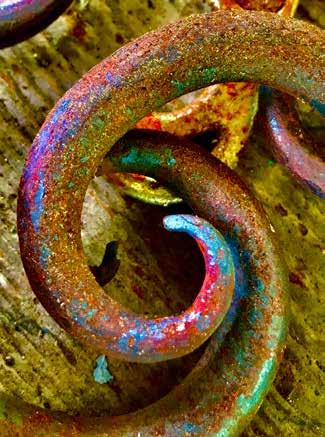 New for this exhibit is a series of digital prints Haden created with familiar subjects such as rusting metals. The framed pieces take on new meaning with titles from Shel Silverstein’s poetry, two are Superstitious and Falling Up.