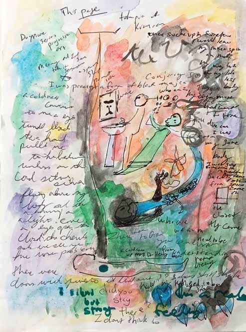 passing he thought if he didn’t try to put them to paper, he’d lose his mind. Later when he felt he was over it, he tossed all the work! The paintings on exhibit at “Diary of an Abductee” are new and from memory. He said recreating them was not an issue at all as the memories never faded.