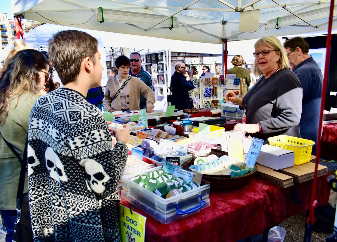 “We started at First Saturday Arts Market in March, 2006, and have been there ever since! Along the way I did farmers’ markets, other art fairs. As things got busier, Larry started helping me produce soap and doing the events as well. These days, we have pared back down to doing mostly “Mitch events.” After 20 years or so, it feels good to cut back!”