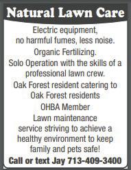 A"#+,&.9&6.9"&9",&;(?@ ?)$.9'&B'&C@?#.:.$/&)1&#& :,99,+@9(@9",@,-.9(+8 !"#"$%&'()*"'+*,$)-"*"#./ !"#"$%&'()*"'+*,$)-"*"#./ !"#"$%&'()*"'+*,$)-"*"#./!"#"$%&'()*"'+*,$)-"*"#./!"#"$%&'()*"'+*,$)-"*"#./!"#"$%&'()*"'+*,$)-"*"#./!"#"$%&'()*"'+*,$)-"*"#./ $)$*'#+*")(&$#,+*$& -$&'(*./'#.) 0"/'('.(123 -)241+/! At Reasonable prices ïPatios ïDriveways ïRoom Additions ïExpedient Work American Made 713-703-8488 Jim ìGod Bless Americaî QUALITY CONCRETE WORK House Painting • Interior/Exterior • Sheetrock Repairs • Door Renishing • Wood Repairs • Pressure Washing Ramiro Garcia 713.206.5965 Cherokee PEST CONTROL 713≠682≠6801 Free Termite Inspection Termites Roaches Ants Silver sh Rodents 713-862-7320 Free Estimates on Fencing IT S!NOT!JUST!A!FENCE IT S!AN!INVESTMENT RIO GRANDE FENCE CO. Compare!us. 30+!Yrs.!Exp. Thank!you!for!your!continued!business Pete’s Quality CUSTOM PAINTING WATER DAMAGE REPAIRS • Exterior/Interior • Pressure Washing • Sheetrock Repair • References • Insured petesqualitypainting300@gmail.com 713-201-5569 832-372-5577 Including Flooded Homes Re-roofs Repairs 3308 Ella Blvd (713) 680-3530 All Work Guaranteed Free Estimates CAMPOS Roofing ™The Residential Roofing Specialists∫ www.camposroofing.com Hardi Siding Gutters Painting Windows 3825 Pinemont Dr. All Makes & Models I Buy cracked Flat Panel TV’s 1622 W. 23rd David’s “We Make House WeMakeHouseCallsCalls” a PRIME ROOFING Commercial • Residential New Roof • Re-Roof 713-681-5001 www.primeroofing.com Washers - Dryers Dishwashers - Ranges KINARD’S Appliance Service 281-350-6255 713-857-2050 Frank Montes Painting Interior/Exterior Sheetrock Repair Match any texture Roofing Work Carpentry Handyman Services Power Washing Maid Service Good References (713) 962-3474 Complete Pavers Gilbert • Patios • Decks • Driveways • Brick Columns 281-948-4879 BRAVENEC ELECTRIC Since 1953 - TECL 19210 Res./Comm. Wiring 713-864-4168 cc accepted bravenecelectric@gmail.com Gilbert 281-948-4879 Repair & Install Pressure Washing Painting Siding WOOD FENCING • Residential • Commercial • Service Licensed - Insured - 26 Yrs. Exp. !"#$%&'()*+,-,'''''$%./'(0,-*1''''!"#$%&'()*+#),$",'-'./'01+2 John Kuenstle Electric,LLC Oak Forest Resident/Ofce 832-425-2152 - Free Estimates !"#$%&$"&'()*+$,(+John Kuenstle Electric,LLC Oak Forest Resident/Office • Residential • Commercial • Service Licensed - Insured - 34 Yrs. Exp. 832-425-2152 - Free Estimates MASTER #178565 TECL #25670 Native Houstonian - 52 Yrs. “A” ON ANGIE’S LIST Aaron’s PLUMBING Drain & Sewer Cleaning !"#$%&'()* !"###$%&%#%'()*%(%+,,713-695-2222 825 C urtin 77018 !"#$%&%$%%'' ()*+,the store Memory Foam Mattresses BETTER BETTER EUGENE HAULS TRASH: Cleans Garages, Trims Trees. 832-890-5453 FENCES & DECKS Repair & Installation All Type Fences Chain link Wood Ornamental Iron Small jobs welcome Call 7 Days Jose Cell (281) 221-0637 ` Wanting to run a classified ad? CALL 713-686-8494 Monday - Friday. We accept credit cards. 5$"'%"+#( *./6+'+./+/! !$/$#")(5.4$( +4-#.,$4$/' "62)'(*"#$ HAR BINGER electric Lights-Plugs-Breakers Cover all electric needs Licensed-Insured 713-721-5490 TEL. 17823 Cooling & Heating Res. - Com. 713-460-COLD(2653) www.acmanhouston.com TACL B27781E American Standard Authorized Dealer with this ad $20 OFF Please Give Us a Call for More Details 832-515-2855 heartsdedicated4@gmail.com Are You Looking for Someone to Care for Your Senior or Family Member in Your Home or a Facility? Dedicated Hearts Provides: • Exceptional Personalized Care • Companionship • Light House Keeping • Meal Prep, etc. -$'& M&M Pet Sitting Affordable Pet Care In Your Home Will Treat Your Loved Ones As My Own Bonded Mitzi 713-444-8517 M S Afford 7.#(&")$ 7..6 !!!"#$%&'()*#'+%",') !"#$%&'($)!&*# !"#$%&'(")#"! *+,&"-$&"'.!%(" (/0123'(/1 453267'8293 (:9;6'.9<0 ../0-1"-23#$4-5#%"-6"+,-./0/.//11 7'$889-:-;$%(-<(88(4-=!8%+* (2/=:'(/0:;2>0 49116500'8293 BLUE MOON ANTIQUES AND ESTATE SALES Antiques and Collectibles Like us on www.facebook.com/ bluemoonantiques-houstontx Providing Estate Sales Services 3311 Ella • 832-286-7882 5$")'5( 8(7+'/$&& 92/:( 5"2)+/! !"#"$%&'&()$% (*+*,-.-&/*01"*2&!01. !"#$%&'(&&$)*+,-$)&*" 345'678'9633 :::;*"#"<)$%'*"#"$%;=%> "--)+"/*$( 8(',(#$-"+# Martinez Concrete Works martinezconcreteworks@gmail.com Bonded and Insured • Free Estimates 713-408-0137 • Driveways • Patios • Sidewalks • Foundation Additions • Stamp Concrete • Weather Damage Replacement • Lawn & Bed Maintenance • Landscape Lighting • Organic Soil Amendments • Landscape Installation • Tree Trim & Removal 713-682-5296 !!!"#$%&'(#))(#*$%()$+%"%,Call today - beautiful home tomorrow! LANDSCAPING SERVICES Lawn Maintenance Fertilize Mulch, Tree Trimming Flowerbed Cleanup Grass Installation Verdeco 713-703-6406 Gilbertís Landscape Lawn Care Mowing Edging Blowing Flower Bedding Fertilizing FREE ESTIMATES 17 Yrs. Exp. (281) 948-4879 TREE CUTTING & TRIMMING Free Estimates Insured & Bonded Residential & Commercial Trimming • Removal Pruning • Topping Stump Grinding 713-480-9450 RAMIREZ TREE SERVICE !"#$!%!$&'%(%)$*+,'%)-.+, LUXURY LAWNS Lawn Maintenance Landscape & Design Sprinklers/Drainage Systems Free Estimates 20 yrs. exp. 713-688-4244 David Bartula :;<= AD CANRUN >?=? *&++$ 234567657898 TOP CASH PAID FOR YOUR GUNS! WE BUY GUNS! 2001 Karbach Suite F Houston, TX 77092 713-694-4867 Licensed FFL/Class III Dealer BLACK GOLD GUNS & AMMO CONSIGNMENTS WELCOME Serving NW Houston Since 1973 FREE estimates 713-299-2711 ROOFING by SERNA BROS. Call Gilbert 346-303-7003 jose.salazar020473@gmail.com Texas Lawn Services & Landscaping • Flower Bedding • Mowing • Edging • Fertilizing• Mulch • Trimming and More !"#$%#&!'$(&!%" !"#$%$#&'() !&*)+$,-&#&$,&,. !"#$%&'()#*+)%,-.% /(,0%1(#()#+$2,'' 2,34(* /01234526733 "2'.("+#(*./6+'+./+/! THANK YOU! !"#$%"&%'#%$()$%*+,-.% /"'%0(1%21)31+%4,51% +,.($%(1+1%,-%/"'+% 6"77'-,$/%)-3%81% )99+16,)$1%/"'% +1)3