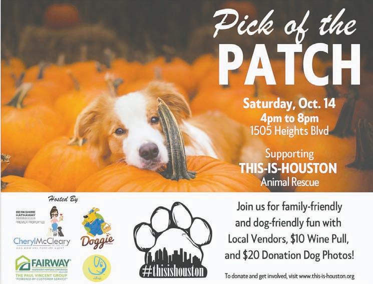 HAVEL, PETER HALLEY, ANNA VILARRUBIAS, WILLIAM CANNINGS, GAIL SIPTAK, MICHAEL MCCANN, ROB HAY, DAN ALLISON, D. LITTLE, SETH ALVERSON, GERTRUDE LEVY BARNSTONE. GARAGE/ESTATE SALE FENCING LEADER PUZZLER SOLUTIONS WORD SCRAMBLE A. melted B. creamy C. dark D. tasty C ACA o CRYPTO FUN Hours: M-F 7am-6:00pm Sat. 8am-12 Noon 5315 Antoine@ Pinemont 713-688-9625 New Well Puppy & Kitten Exam Call About Cat Vaccines * With Wellness Exam Dog Rabies Vaccination $875 FREE Routine Male Cat Neuters $49 * 40 Years of quality care for your family pets 10 45 $ www.facebook.com/stmatthewsunitedmethodistchurch 4300 N. Shepherd Dr., Houston, TX 77018 713-697-0671 St. Matthew’s United Methodist Church Free pancake breakfast October 7 8:30-10am, in Fellowship Hall Saturday, October 21 10:00a - 2:00p Vendors, silent auction, food, games, train, face painting & more! FALL FESTIVAL