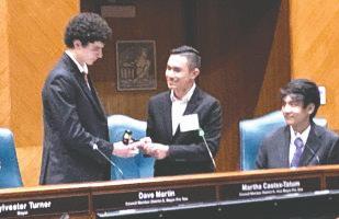 ration ceremony held on September 28 in the City Hall council chambers. In attendance were students’ family members, City officials, and staff. Established in 1998, the MYC provides youth the opportunity to learn about city government, share issues of concern with city officials,