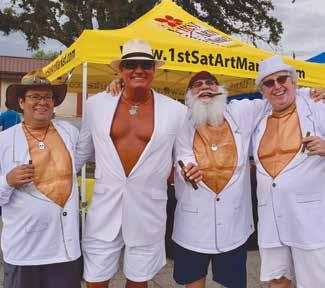 From his bold fashion choices to his big heart, Phil “Tan Man” Brayton is a oneof-a-kind Heights personality who has become a symbol of fun, positivity, and community in Houston. Whether he’s at the Texas Renaissance Festival or just hanging out at the First Saturday Arts Market, Brayton is always ready to share a laugh, take a photo, and make someone’s day a little brighter. And in a world that often feels overwhelming, that’s a gift worth celebrating. You can follow Phil, Tan Man, Brayton on one of his Facebook pages, Phil Brayton, or Tan Man.