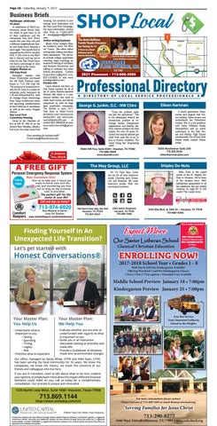 meeting. Get involved in promoting local businesses and the Buy Local First Campaign. For more information, contact John Frels at 713-822-0475 or mortgageguru@johnfrels. com. Online writing business Shady Acres resident Wanda Granberry owns The Writersâ Coach. She offers online writing help, editing, and document assessment. Her services include college application coaching, essay coaching, assessment/editing of scholastic and business documents, and editing of websites and other written documents. Contact wtgranber r y@gmail.com, 832-723-5959, or visit www. wandagranberry.com. Kitchen 205 Laura Basurto has been an Oak Forest resident for all of her 31 years. Basurto operates Kitchen 205 which is a commercial kitchen she rents to chefs, food trucks, and starter companies as well as large food production companies. The kitchen is open 24/7. Visit them at https://www. facebook.com/commercialkitchen205/ and www.Commercialkitchen205.com or contact 832-206-6529 or commercialkitchen205@gmail. com.