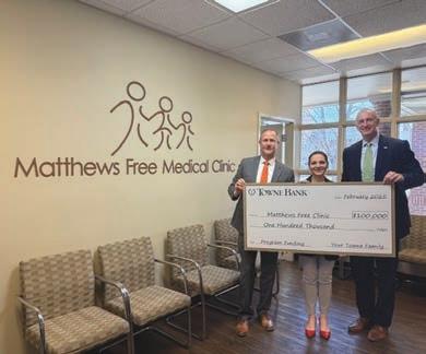 Pictured (from left) are Will Bishop, senior vice president and commercial banking officer at TowneBank; Amy Carr, executive director of the Matthews Free Medical Clinic; and Ted Wolfe, president of TowneBank Charlotte. Photo courtesy of TowneBank