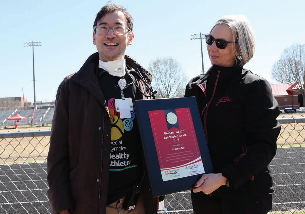 Vicki Tilley, health director for Special Olympics North Carolina, presented Dr. Tobias Tsai with the award at the 2025 SONC Champion Wellness and Health festival on March 21 in Charlotte. Photo courtesy of SONC