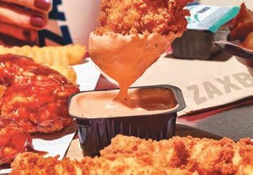 Zaxbys serves fresh, prepared-at-order Chicken Fingers and wings tossed in a variety of sauces as well as dishes like Chicken Bacon Ranch Loaded Fries and Fried Pickles.