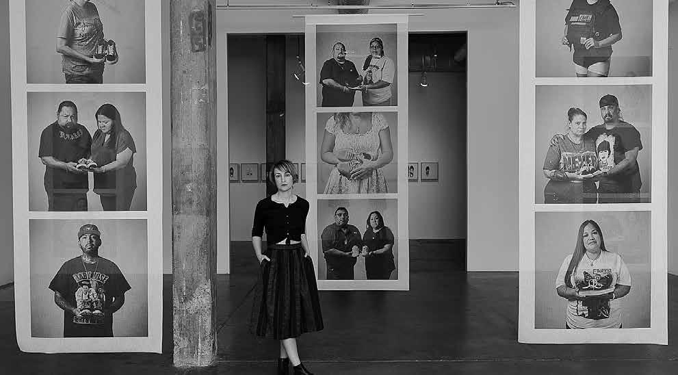 fabric, the photographs reveal the families’ vulnerability, resiliency, anger, grief, and hope for the future. The exhibit also features the weighted vest hero teacher Eva Mireles wore during her workouts - a fitting symbol of her strength.