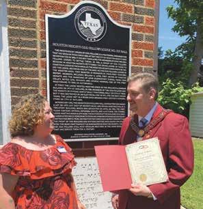 The cast iron marker came after past Grand Paul Jennings submitted an in-depth history of the lodge going back to 19065, when a group of Odd Fellows members residing in Houston Heights petitioned the Grand Lodge of Texas to charter a lodge in this area.