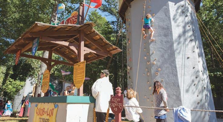Adventures for young and old await with people-powered rides and games of skill. Climb a castle wall, take ight on DaVinci’s ying machine, sail the high seas, throw axes,