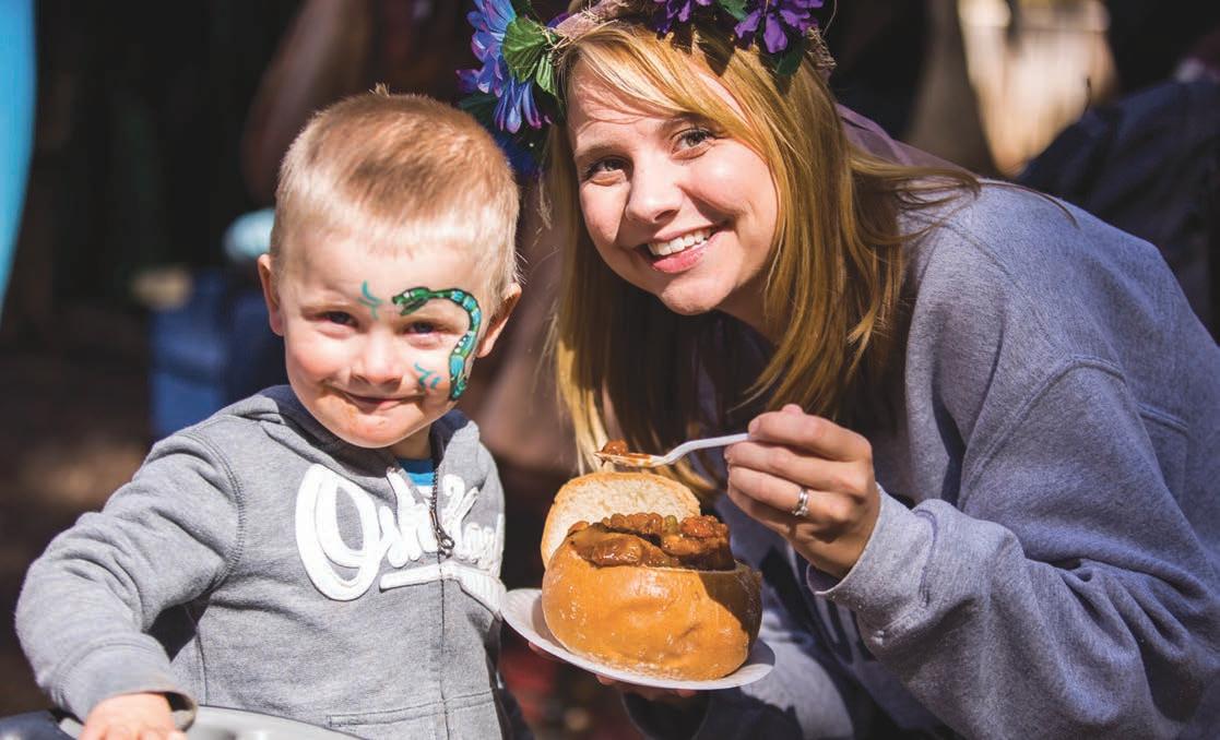 Adventures for young and old await with people-powered rides and games of skill. Climb a castle wall, take ight on DaVinci’s ying machine, sail the high seas, throw axes,