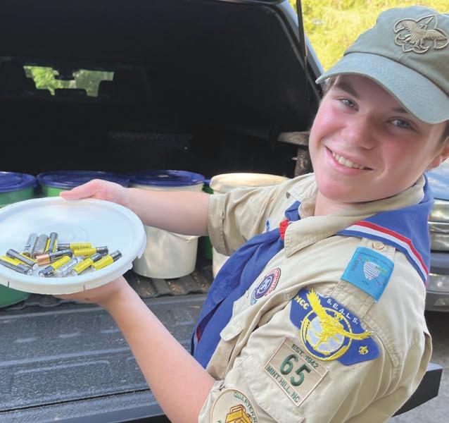 Adams shared his results Aug. 14 at the Mint Hill Board of Commissioners meeting, where he received a standing ovation. During the meeting, he announced that the $1,500 raised through the sale of buckets and recycling would be donated to the Fire ghters’ Burned Children’s Fund.