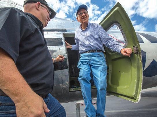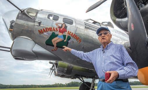 Charles Richardson reminisces about his experiences in World War II as he walks around the Madras Maiden in September 2017. The bomber was similar to the one he flew in 35 missions during the war.