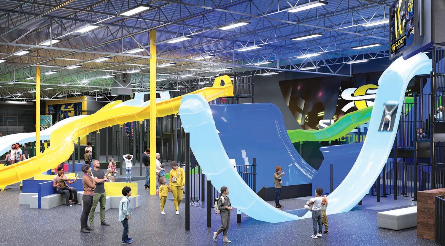 The indoor attraction brings adrenaline-filled slides, air courts and nonstop excitement to South Charlotte. Rendering courtesy of Slick City Action Park
