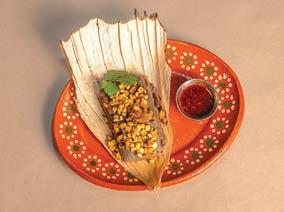 e seasonal tamales are handwrapped in tender corn husks, steamed and lled with three different llings: Pork in Chile Verde, Butternut Squash and Chicken with Rajas.