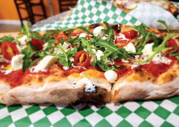 There are two different sized pizzas to choose from - an eightinch and regular sized with dif ferent toppings on both. I chose the regular sized one with bur rata pearls, cherry tomatoes and arugula. Straight from the oven, it was piping hot and drizzled with some fruity olive oil and just the