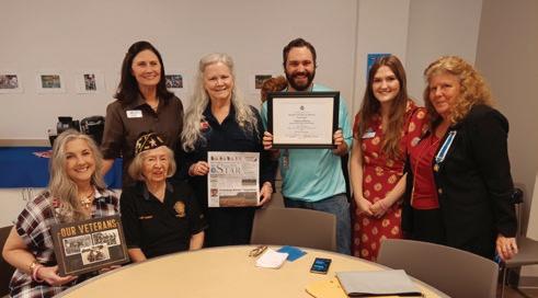 Contributed photo Leader editor Landan Kuhlmann, third from right, displays a plaque given to the newspaper for the “Our Veterans” book last weekend.