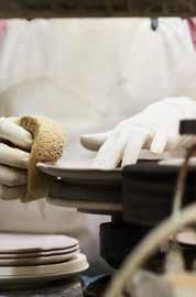 Before our plates are fired, the edges are smoothed in a process known as ‘towing’. Towing finishes the plate edge, allowing glaze to flow evenly over the surface. This process is very delicate as the plates are very fragile before firing.