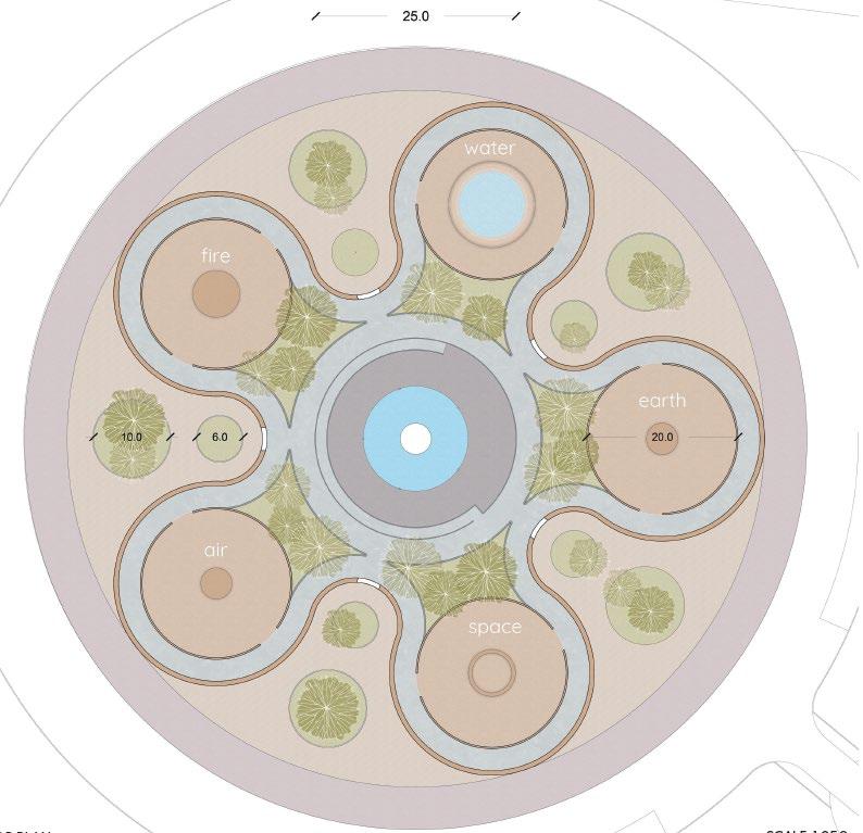 Brief: This design presents an urban park that integrates the principles of dissociation, sacred geometry, and the elements of life to create a sanctuary-like space within an urban setting. The park aims to provide individuals with an immersive experience that helps dissociate them from their daily routines and reconnect with nature.