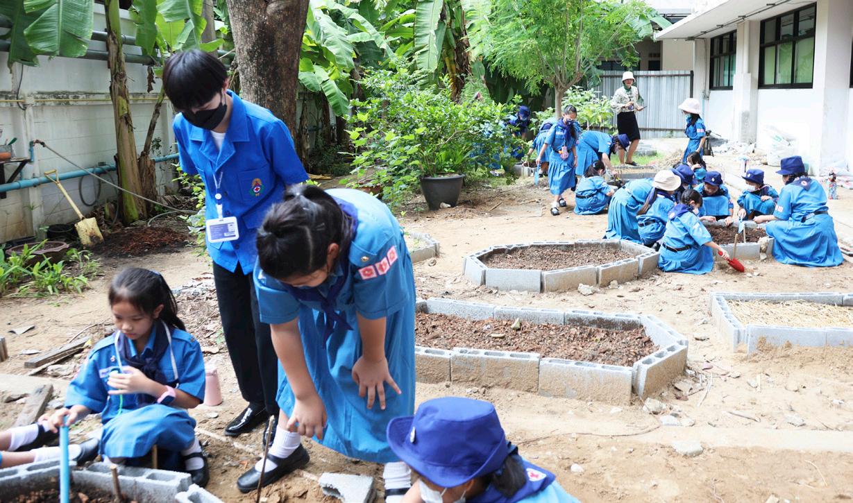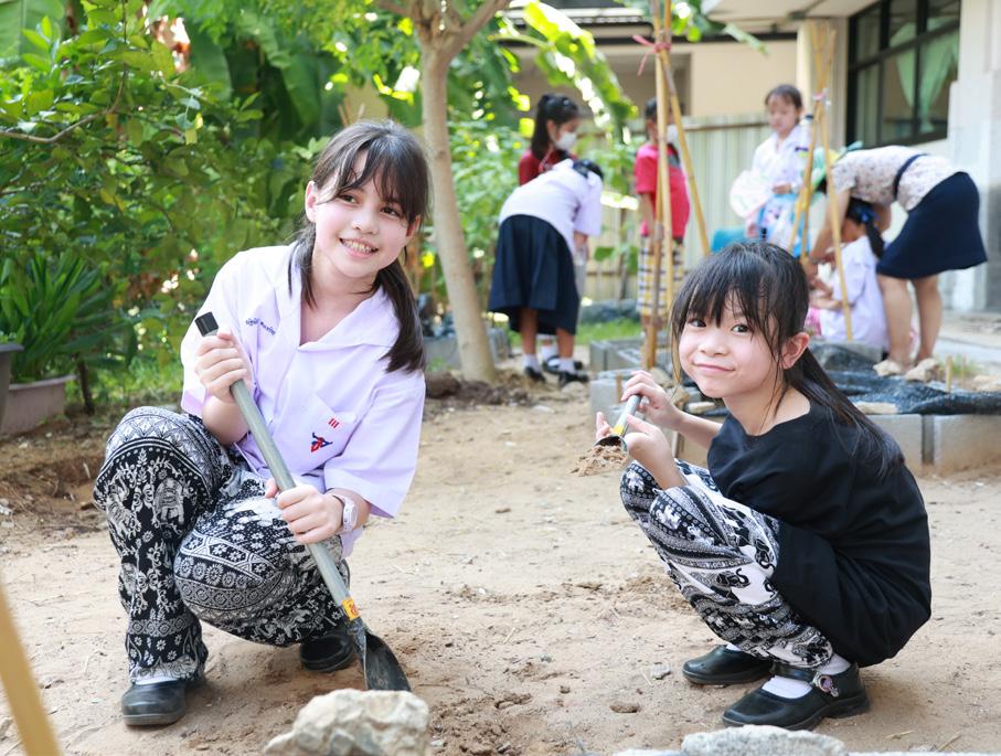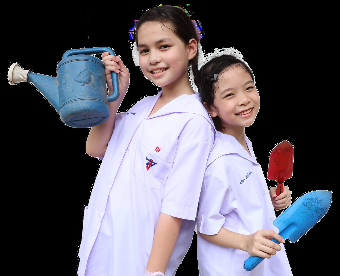To allow the students to know how to self-manage, communicate, have advanced thinking, work in a team, and be strong citizens who live in harmony with nature and technology, here comes the Project ‘Little Garden’ in which they can experience real-life situations. The students will grow plants and can explain how the plants grow. They also have to take care of their own plants, preventing them from having pests, and finally harvesting the plants for cooking. The students will be able to explain how to cook properly. Last but not least, another Project ‘Little Market’ is adopted at this level. Their plants that are cooked and processed, or even in their original forms, will be in the market so that the students can add value to their products and gain income for themselves.