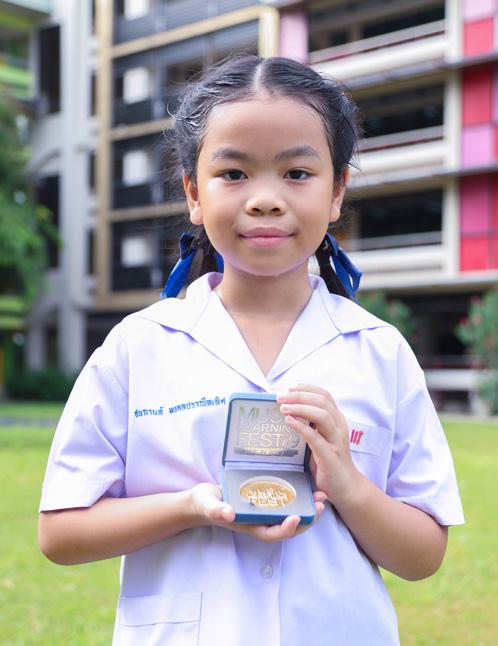 Ms. Chanakarn Mongkonpraneedlert, a Prathom 3 student, won the 3rd place in the CMTG Piano Competition & Festival 2023 in Grade 1 Category, as well as awarded a gold medal on June 24, 2023, and won a gold medal in the Music Learning Fest (#9) 2023, in the junior category, organized by Trinity Thailand on August 2, 2023.