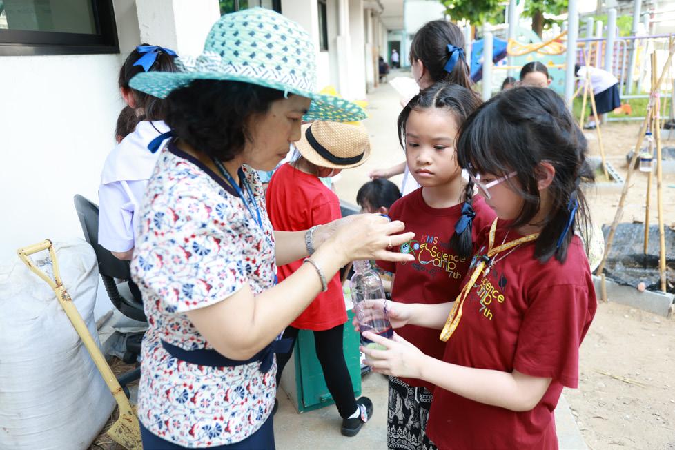 แลัะวิิทยี่าการอยี่่างยี่ังยี่้น จัึงเกิดเป็นแนวิคิด “หน้น�อยี่นักสารวิจั” ด�วิยี่การให�นักเรยี่นตั งคาถามผู้่านการสารวิจั สังเกต บันทึกข�อม้ลั โดยี่ใช�สถานทีภัายี่ในโรงเรยี่นเพ้�อให�นักเรยี่นเกิดควิาม คุ�นชิน แลัะใช�ทรัพยี่ากรในโรงเรยี่นให�เกิดประโยี่ชน ส้งสุด แลัะนักเรยี่นได� “เรยี่นรส้่โลักกวิ�าง” ด�วิยี่การใช�เทคโนโลัยี่ส้บค� นข�อม้ลัที�ได� สารวิจัมา แลั�วินามาอภัิปรายี่รวิมกับ เพ้�อน ๆ ทังนีนักเรยี่นได�เกิดกระบวิน การคิด เห็นคุณค่า แลัะนาควิามร มาใ ช� ใน ชีวิิตประ จั าวิันไ ด� อ ยี่่าง มีควิามสุข ถัดมาชันประถมศัึกษา ปที 2 เพ้�อปลั้กฝ่่งให�นักเรยี่นเป็น พ ลั เ ม้ อง ที�เ ข� มแ ข็ง อ ยี่้่ร วิ ม กับ ธรรมชาต แลัะวิิทยี่าการอยี่่างยี่ังยี่้น เ กิดเ ป็นแน วิคิด “รอบ ร KMS” ผู้่าน การสอบถาม ถึงประ วิ ติแ ลั ะ ที�มาของ โรงเรยี่น รวิมถึงการสังเกตสภัาพสิงแวิดลั�อม ในโรงเ ร ยี่ น ที นักเ ร ยี่ น ต� องอ ยี่้่ร วิ ม กัน แ ลั ะ ส ภั าพแ วิ ด ลั� อม ภั า ยี่ นอกโรงเ รยี่ น ชุมชนใก ลั� เ ค ยี่ ง ตาม