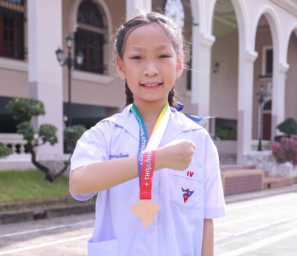 Ms. Paul Suwanvilaikul, a Prathom 2 student, won a bronze medal, in the Duo Jazz Junior category of the children aged 10-12.