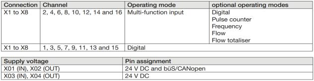 Up to eight inputs can be used as frequency inputs (max 2.5kHz) for flow rate and totalisation