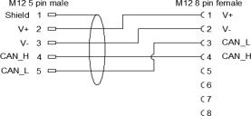 M12 female straight to M12 male straight, A-coded, 5 pole, sensor actuator cordset