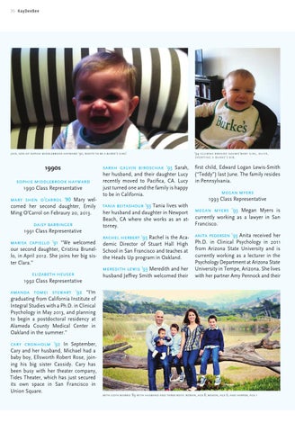 first child, Edward Logan Lewis-Smith (“Teddy”) last June. The family resides in Pennsylvania. megan myers 1993 Class Representative megan myers ’93 Megan Myers is currently working as a lawyer in San Francisco. anita pedersen ’93 Anita received her Ph.D. in Clinical Psychology in 2011 from Arizona State University and is currently working as a lecturer in the Psychology Department at Arizona State University in Tempe, Arizona. She lives with her partner Amy Pennock and their