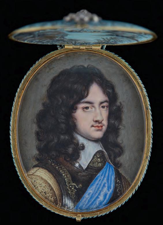 This exceptional portrait of the young Charles II can be traced to a precise date, when the artist recorded a miniature painted on the king’s request for: ‘ Mr. Seymour of Yor Majties Bed-chamber… ye 2nd of December 1651.’ The magnificence of the setting reflected the loyalty and courage of the recipient – Henry Seymour, a cousin of the royalist leader William Seymour, Marquess of Hertford, who travelled into exile with the future king.