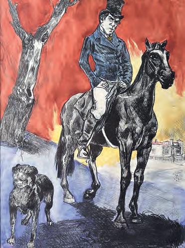 Mr Rochester, by Paula Rego (1935–2022). 2001. Unique hand-painted lithograph, 89.5 by 67 cm. JAMES HYMAN GALLERY, LONDON