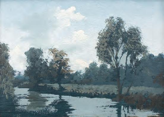 River Stour, Essex, by Algernon Newton (1880–1968). 1938. Oil on board, 12 by 17 cm.