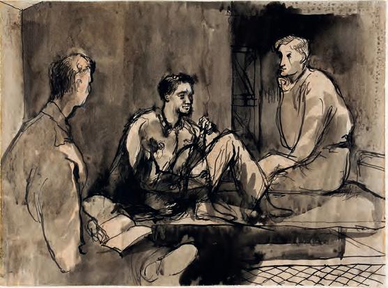 Soldiers in a billet, by Keith Vaughan (1912–77). 1942. Pen, brush and ink, 25.5 by 35 cm.