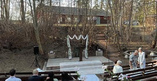 Suitable for year-round events, the ampitheater, currently prepared for a wedding, is situated next to Casey’s Cabin.