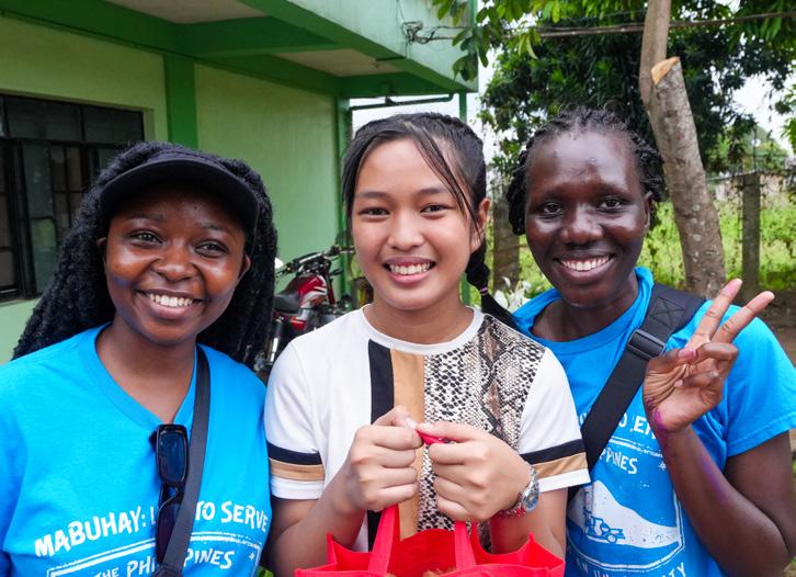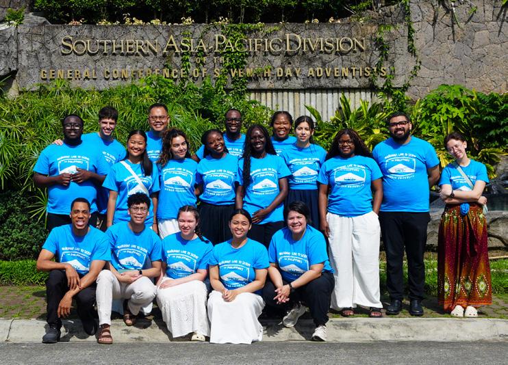 PREVIOUS PAGE : Joshua Martin, a 3rd-year elementary education major connecting with the children at the Mango House. TOP LEFT: L-R: Precious Maseko, a 2nd-year Religious Studies major, and Maranatha Odong, a 2nd-year Biology major, pose with one of the children at Mango House. TOP MIDDLE: The team at the Southern Asia Pacific Division offices, the home-base for the mission trip. TOP RIGHT: Michele Luceno, a 4th-year Biology major and Student Missions Chaplain, poses with
